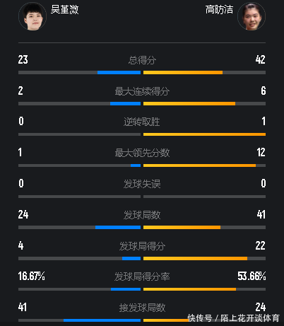 | 2025年羽毛球世锦赛,已经在法国巴黎拉开帷幕,国羽在女单赛场一共派出了四名选手出征,正赛第一个比赛日,陈雨菲率先出战轻松横扫了东道主选手塔拉诺娃开了一个好头,这一个比赛日,王祉怡、韩悦和高昉洁也都迎来了自己在本届世锦赛的单打首秀,率先出战的高昉洁,遭遇到了马来西亚选手吴堇溦。 本场比赛高昉洁的进攻状态非常好,充分发挥出了自己身高的优势,只要吴堇溦回球稍微不到位,就能够从制高点直接发动进攻,最终牢牢掌控局面的高昉洁,也以大比分2-0横扫获胜! ![]() 【比赛看点】 2000年出生的吴堇溦,可以说出道即巅峰,18岁就连续拿到了青奥会和青年世锦赛的女单冠军,为自己赢得了天才少女的外号,但是受到伤病的影响,吴堇溦并没有兑现天赋成长为顶尖女单,本赛季的状态更是糟糕透顶,在来到巴黎之前,一共打了13场比赛,战绩仅为4胜9负,世界排名也下滑到了第50位。 虽然世界排名第14的高昉洁也是因为伤病的影响,导致自己没有成长到预期的高度,但是她如今的战斗力和竞争力远在吴堇溦之上,两名选手上一次正面交锋是在23年的亚洲羽毛球混合团体锦标赛上,当时高昉洁以大比分2-1笑到了最后,时隔一年再度相遇,能否延续强势的发挥,也就成为了此战最大的看点。 ![]() 【比赛回顾】 尽管这一场比赛是两名选手在本届世锦赛的首秀,但对彼此并不陌生的二人,一上来就打得非常有侵略性,接发球后不约而同选择了提速,想要给自己下压创造机会,不过明显高昉洁进入状态更快,早早确立起了3-1的领先,虽然接下来出现了一些无谓失误,让吴堇溦迅速追平了比分,但是在5平之后,高昉洁控制住了失误,再次拉开比分,以11-8结束了前半局的争夺。 重返赛场之后,急于追分的吴堇溦明显开始提速,想要通过抓网前去抹平分差,但高昉洁很快识破了对手的战术意图,通过坚决压制两个底角,不给吴堇溦轻松上手的机会,后者虽然一直在强行上手,但效果不好频频回球下网送分,高昉洁也笑纳大礼将优势扩大到了17-11,并且如愿以21-14先拔头筹。 ![]() 拿下首局的高昉洁,第二局的出手更加坚决,上来就连得5分,在吴堇溦艰难打破这一局的得分荒后,高昉洁又连得3分,将领先的优势扩大到了8-1,虽然吴堇溦一直在努力追分,但高昉洁还是带着11-4的优势,进入到了中局间歇。 再次回到比赛场地之后,不能再输的吴堇溦,没有其他的选择,只能继续提速,去创造主动得分的机会,但稳扎稳打的高昉洁,根本没有给她打出得分高潮缩小比分的机会,如愿以21-9锁定了胜局。 ![]() 【本场数据】 ![]() |